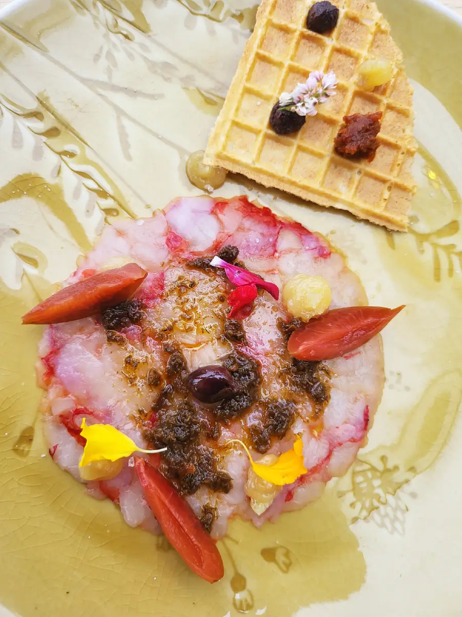 Red Prawn Crudo & Bricelet