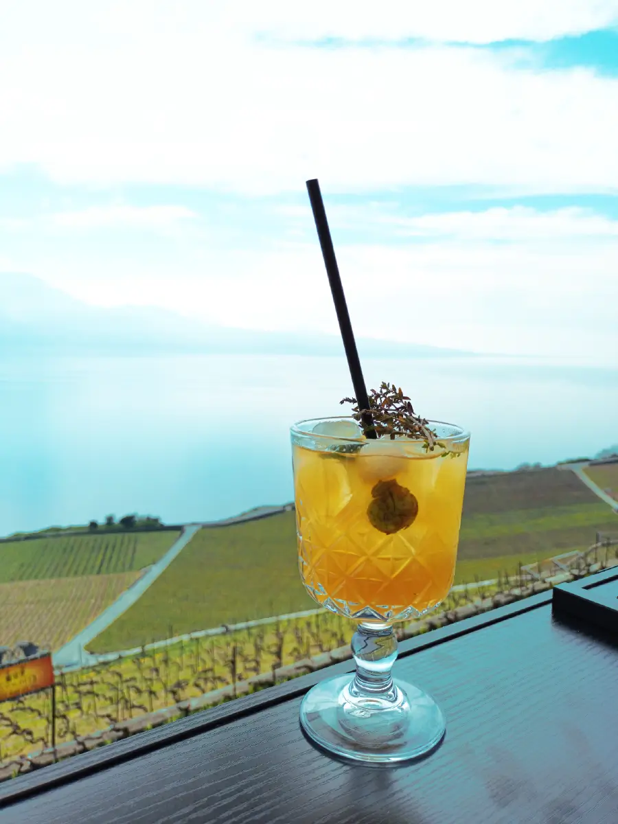 Cointreau, pear juice, Amaretto, Calvados, basilic leaves, pear balls