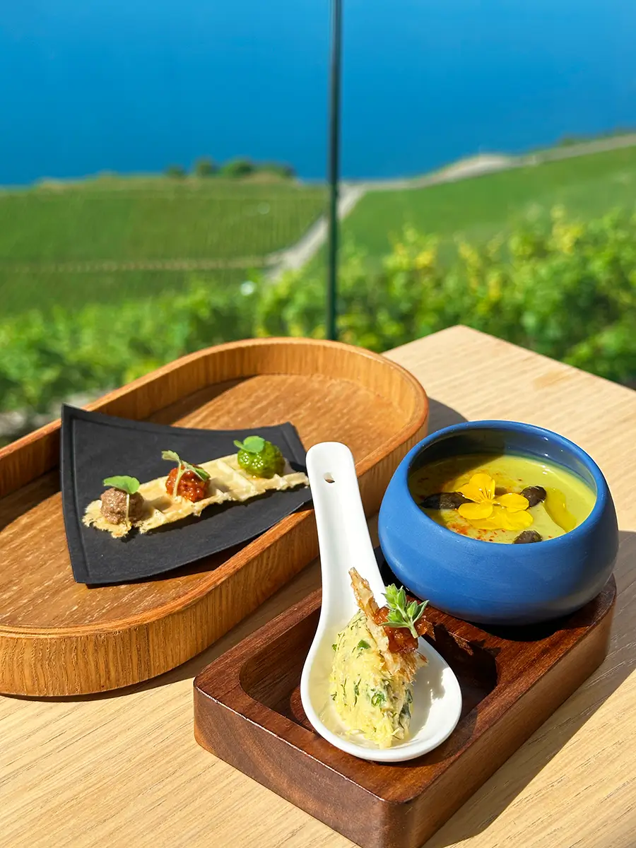Guided by his Mediterranean roots, hand in hand with local artisans, Chef Lionel Rodriguez carefully selects the treasures of our Swiss lands to create a menu full of color and surprises.